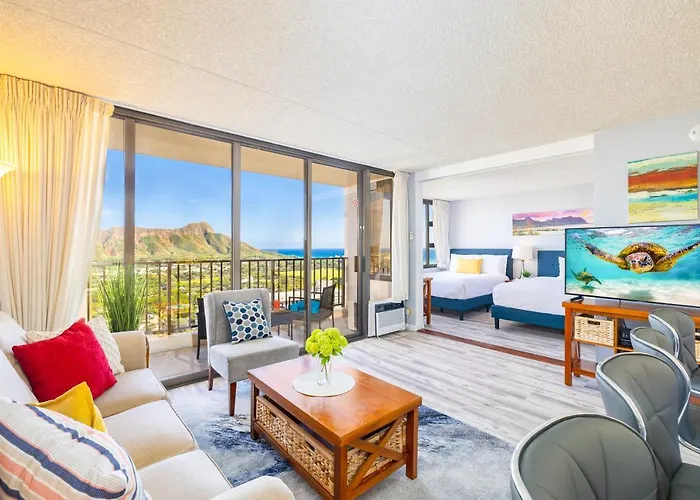 The 1-room Ocean & Diamond Head Views - Near Beach - Parking! Apartment Honolulu is situated just a 6-minute walk from Queen's Surf Beach and entices guests with a sauna. Diamond Head State Monument is just a short drive from the 56 m^2 apartment while Upscale shopping is 1.5 km away.